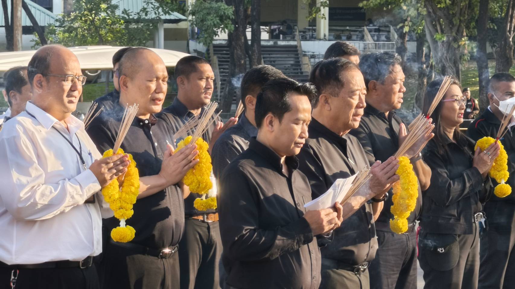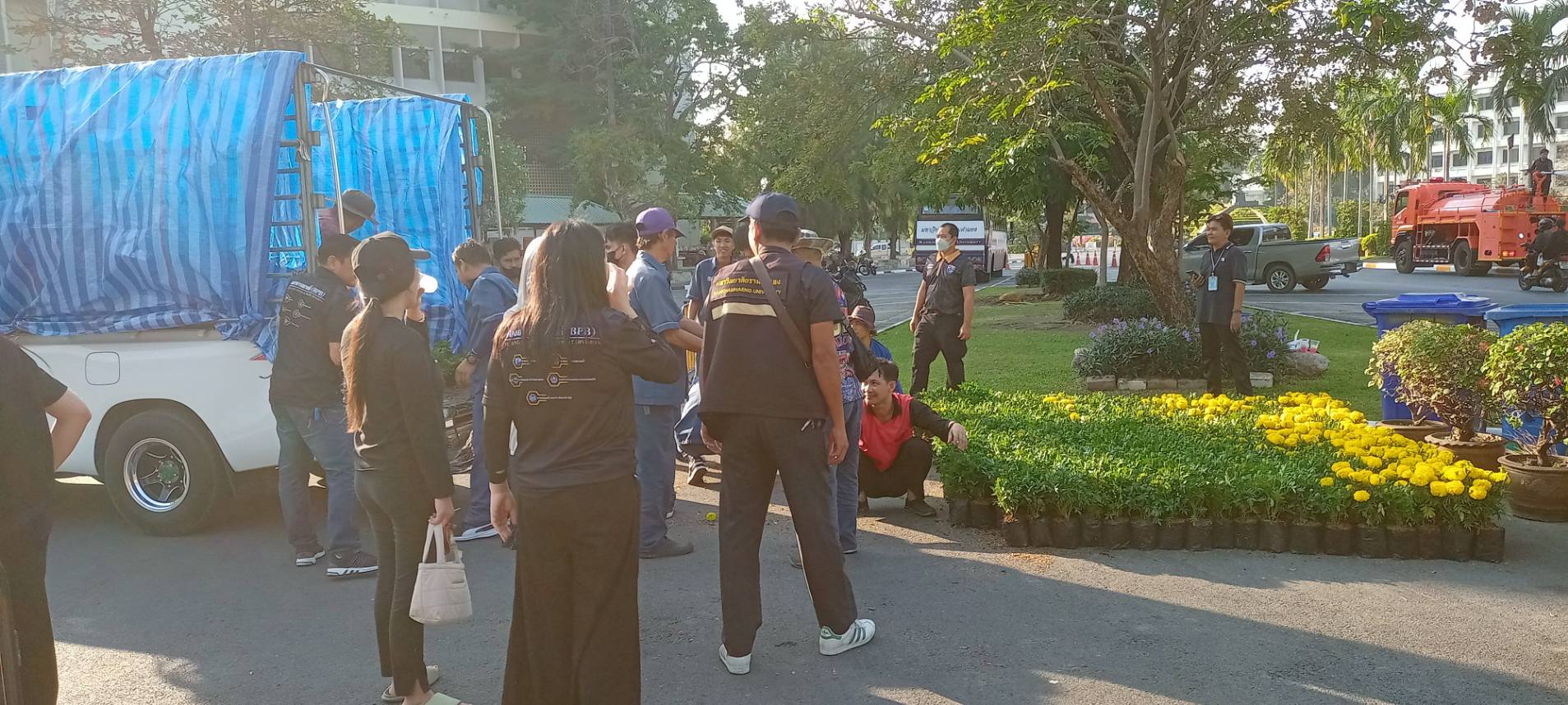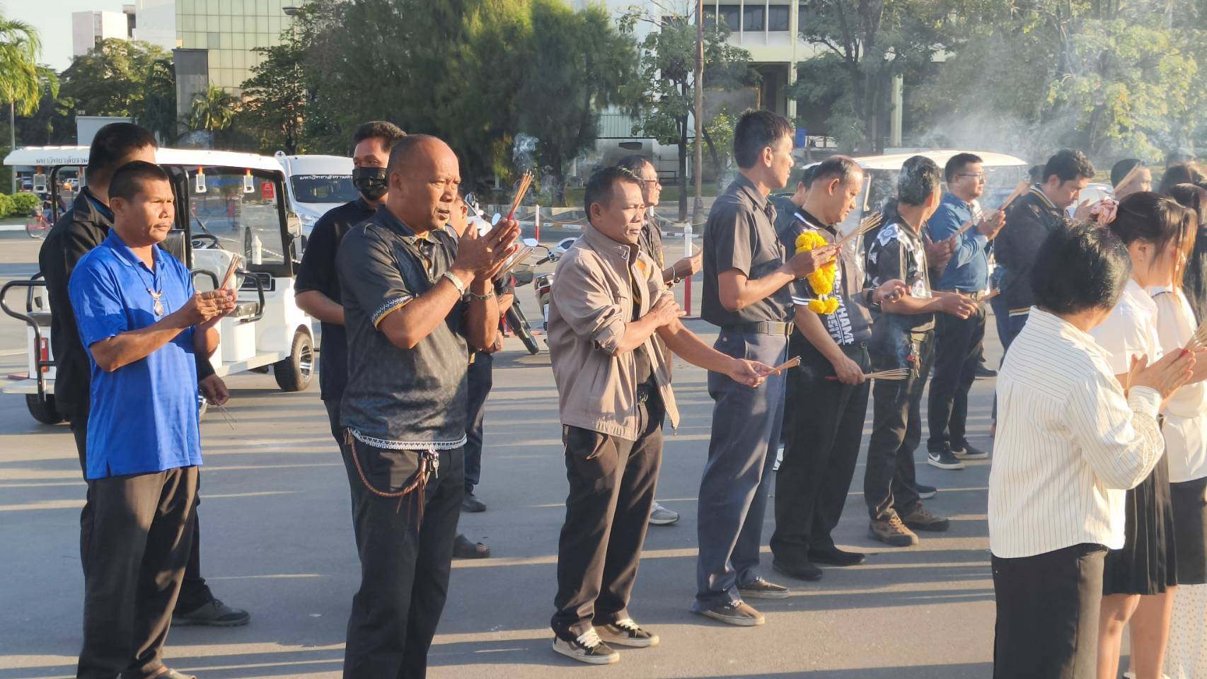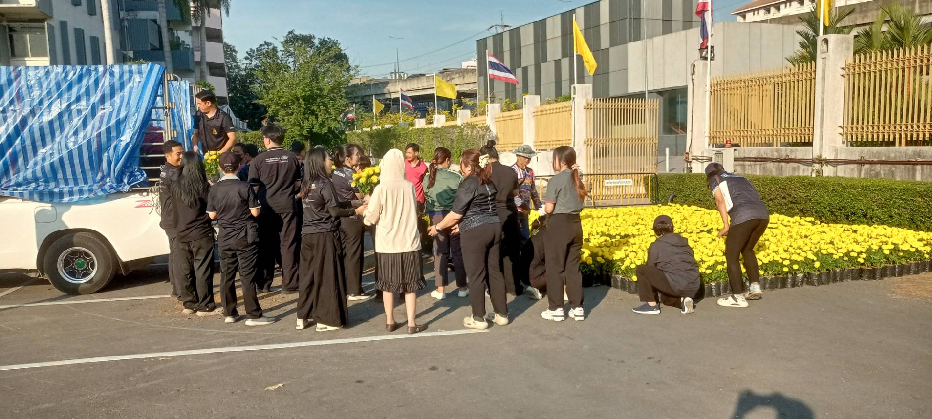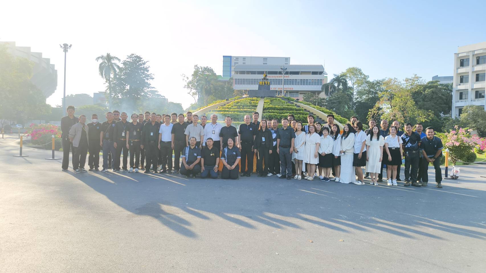 | บุคลากรกองอาคารสถานที่ร่วมกิจกรรมเคารพธงชาติ |