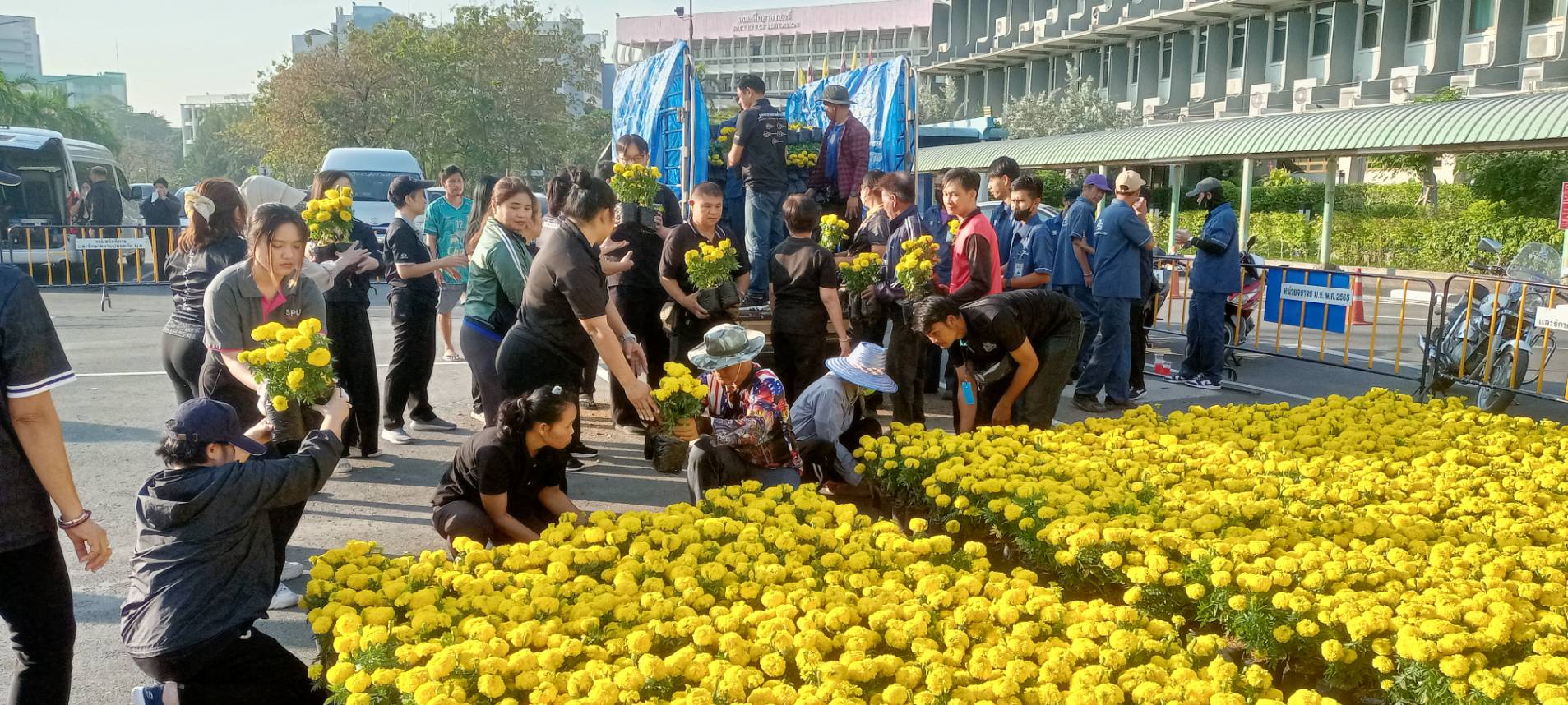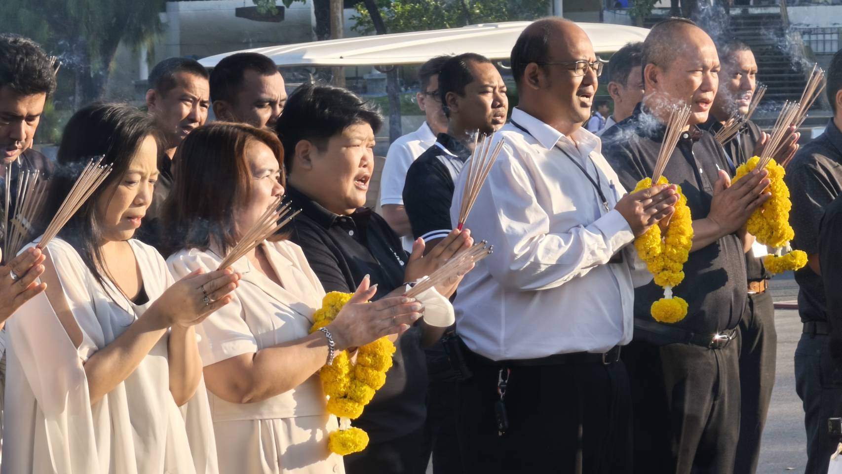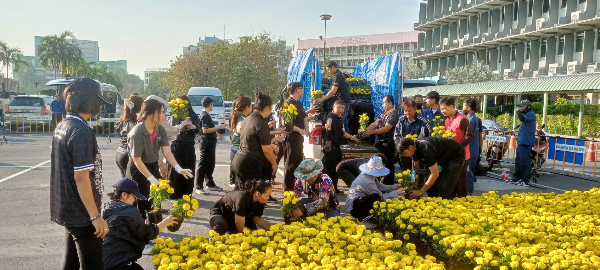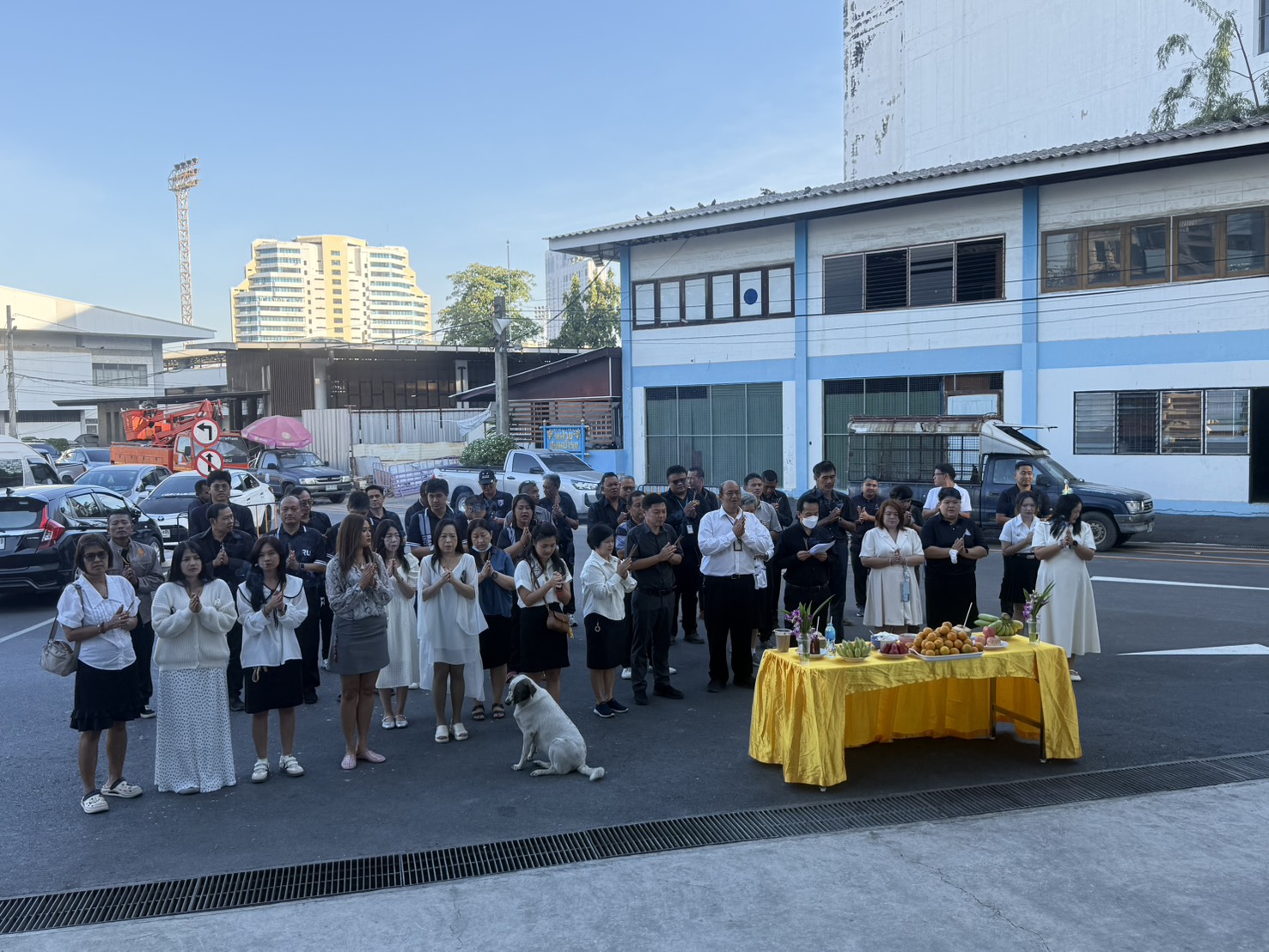 | บุคลากรกองอาคารสถานที่ร่วมกิจกรรมเคารพธงชาติ |