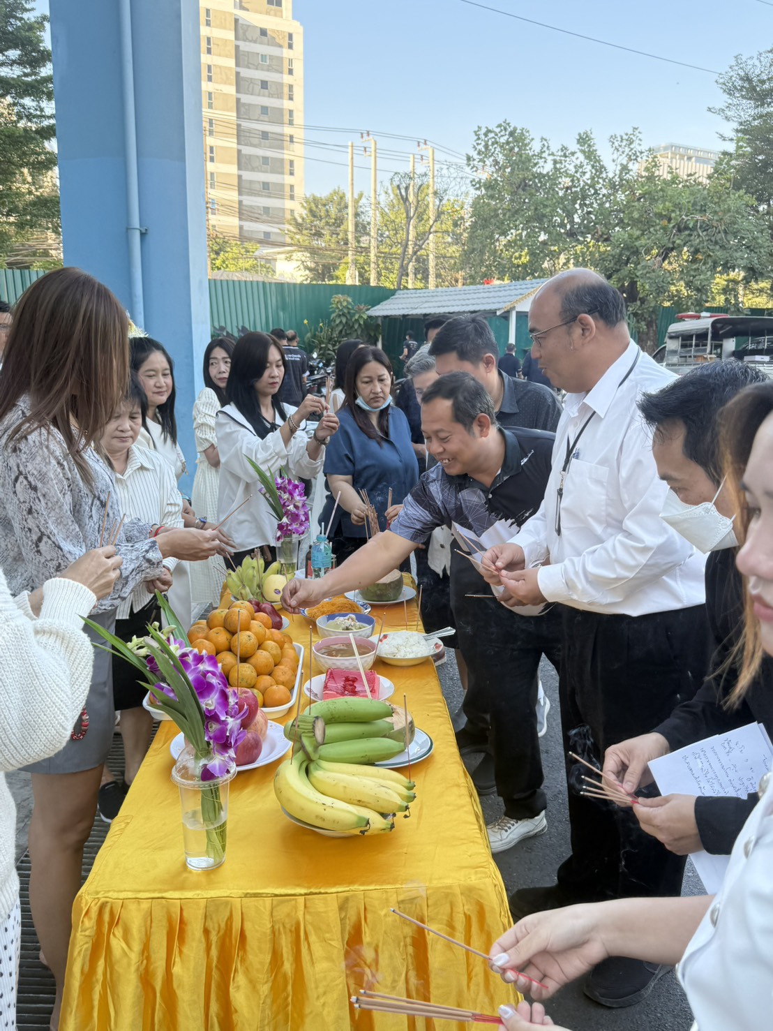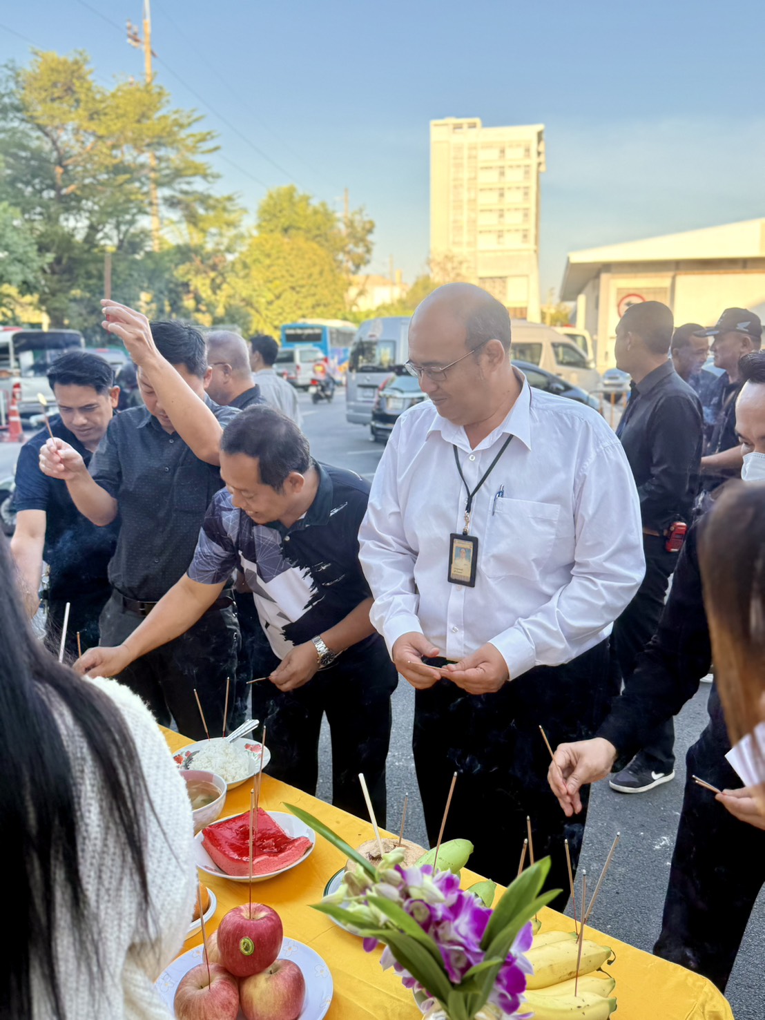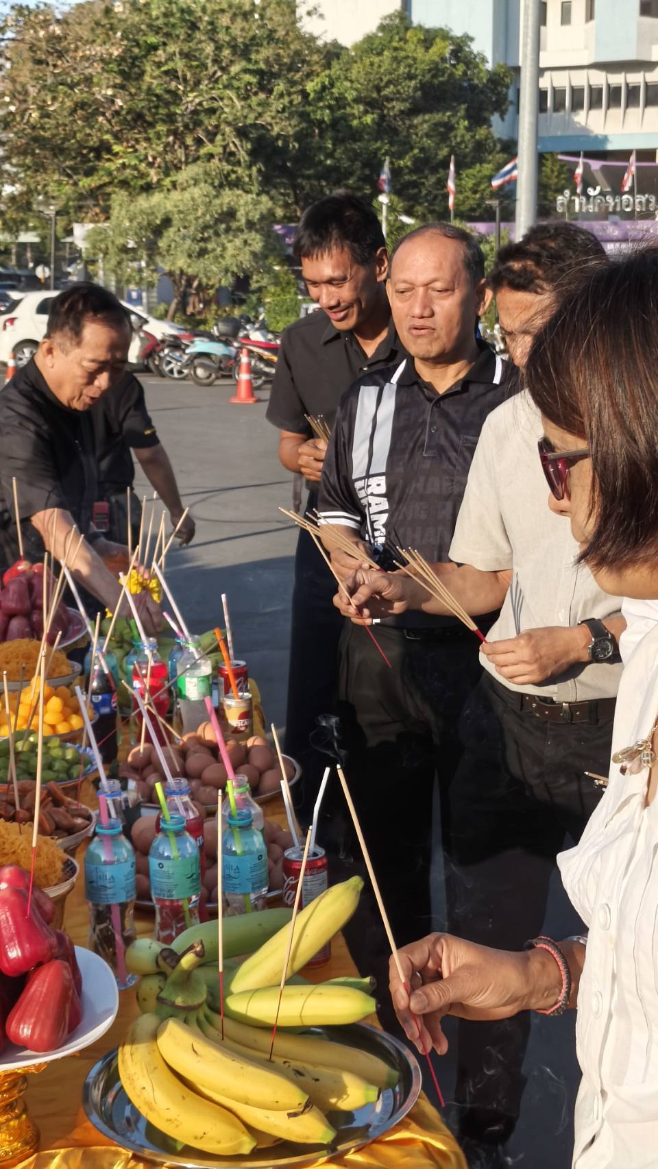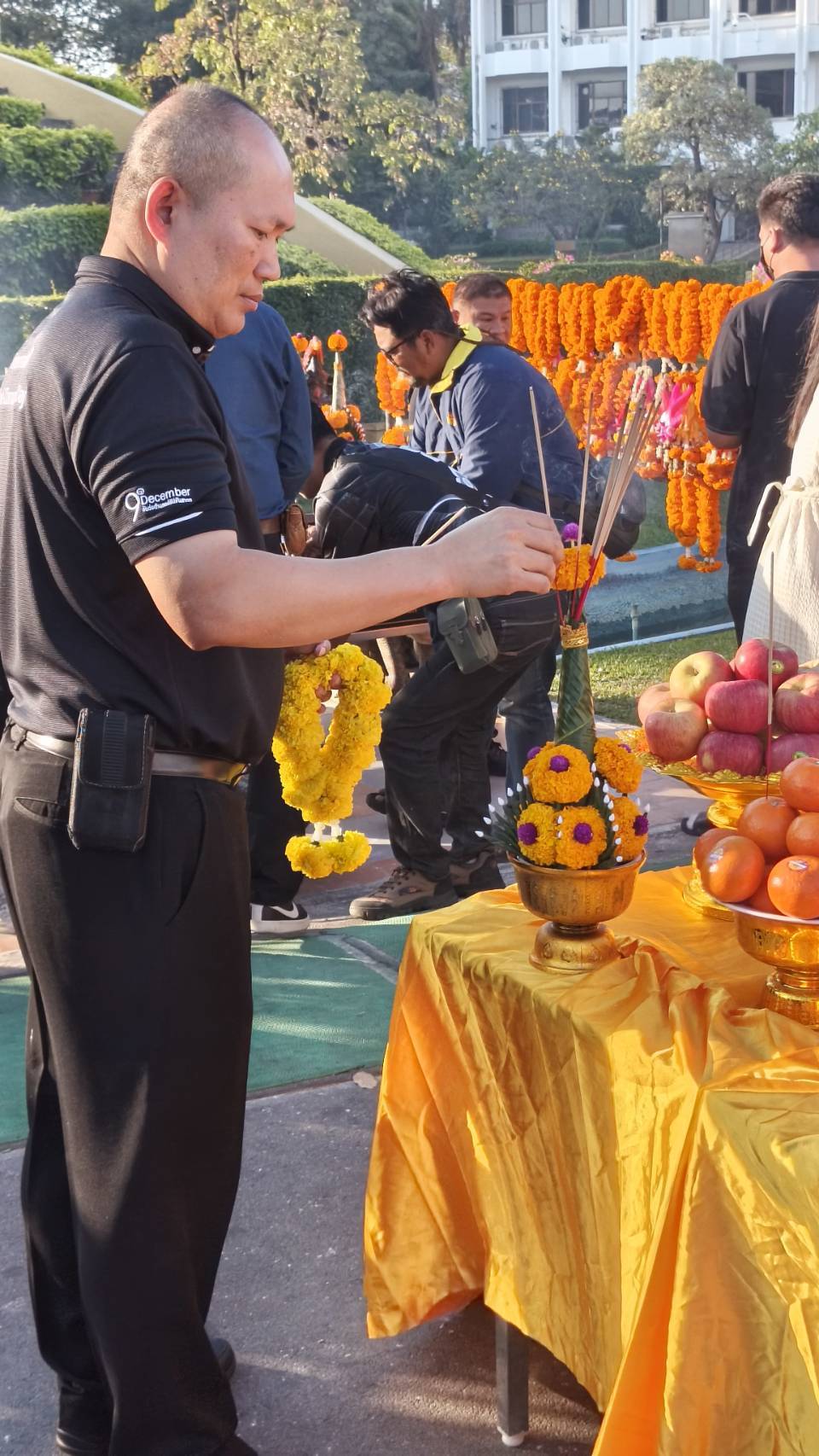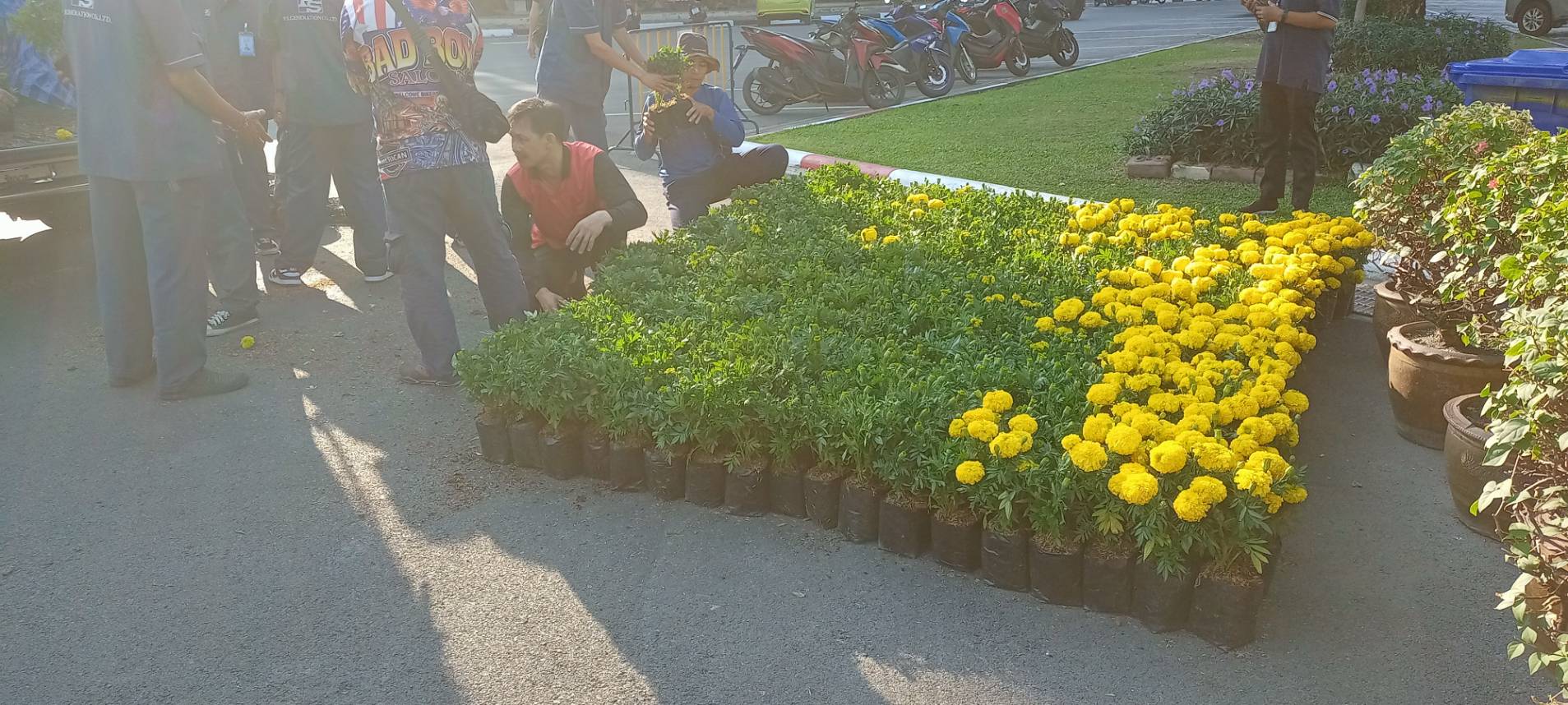 | บุคลากรกองอาคารสถานที่ร่วมกิจกรรมเคารพธงชาติ |